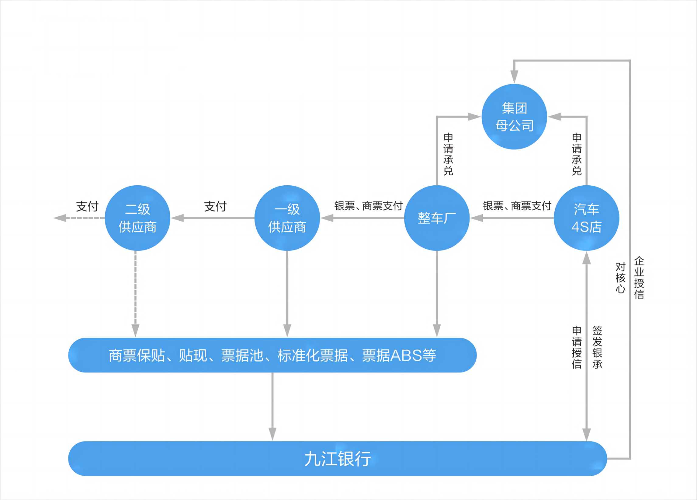 定義:指九江銀行面向供應(yīng)鏈核心企業(yè)及上下游企業(yè)提供票據(jù)結(jié)算和融資綜合服務(wù)方案,旨在盤活供應(yīng)鏈上應(yīng)收應(yīng)付賬款,解決鏈條上的中小企業(yè)融資難融資貴問題,提升產(chǎn)業(yè)鏈的總體競爭力。