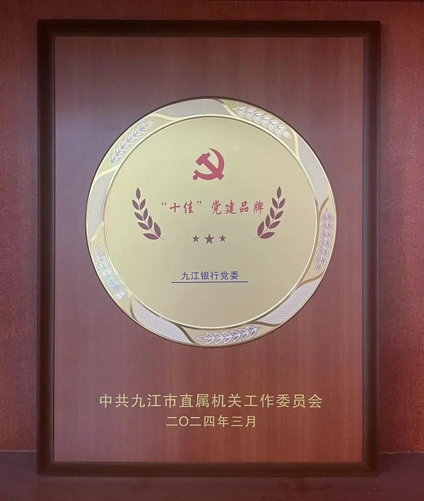 3月28日,2024年度全市機關黨的工作會議召開,會上通報了九江市直各單位黨組織黨建“一單位一品牌”建設情況,九江銀行黨委“九久‘紅’銀”黨建品牌榮獲“市直單位‘十佳’黨建品牌”稱號。